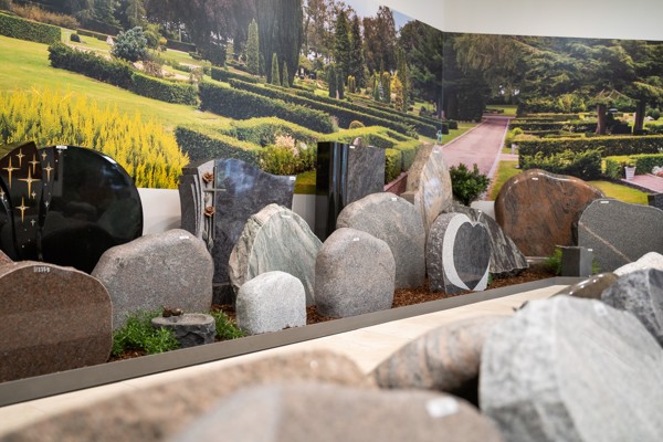 Her kan du selv designe gravstenen - lige fra valg af type, farve, størrelse og til dekoration og tekst.