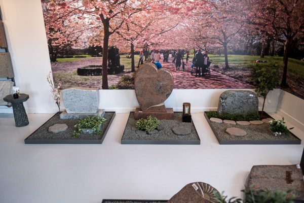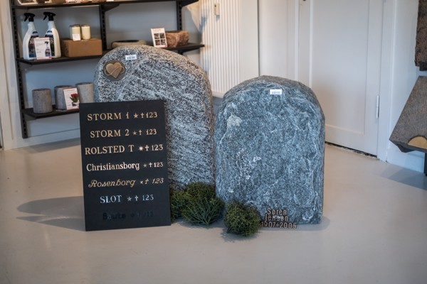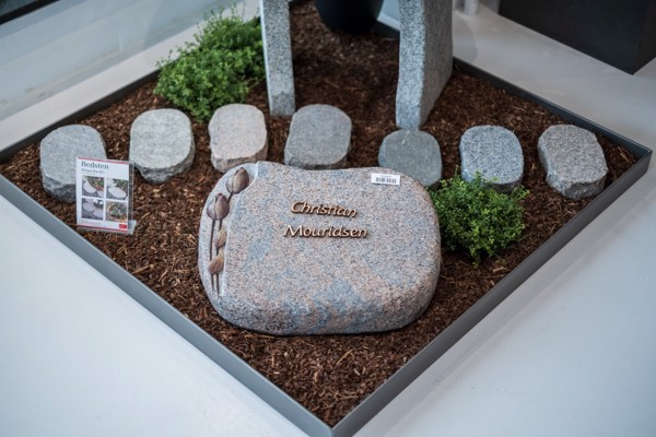 Her kan du selv designe gravstenen - lige fra valg af type, farve, størrelse og til dekoration og tekst.