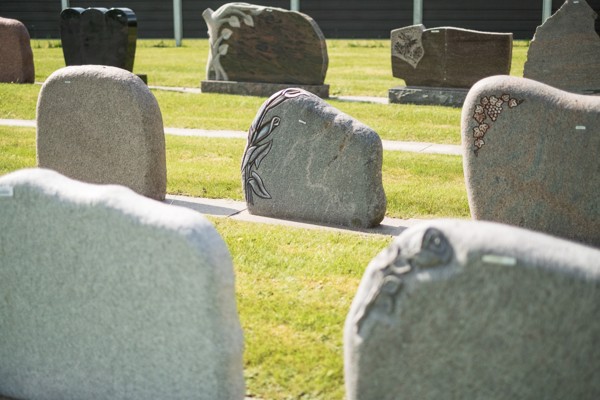 Her kan du selv designe gravstenen - lige fra valg af type, farve, størrelse og til dekoration og tekst.