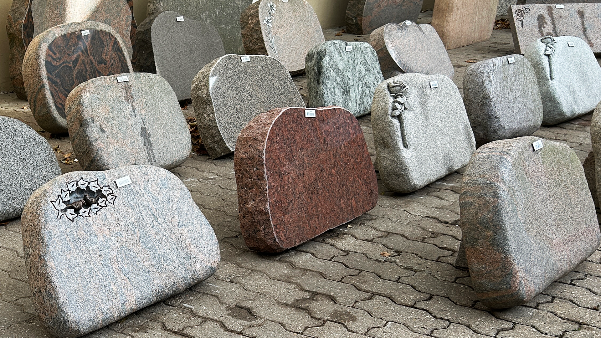 Besøg salgsudstilling med alsidigt udvalg af gravsten til såvel urnesten, plænesten samt kistesten i Brædstrup. Indgang til udstillingen til venstre for DIN TØJMAND-Bang Wohlert.