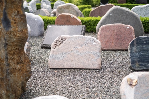 Her kan du selv designe gravstenen - lige fra valg af type, farve, størrelse og til dekoration og tekst.