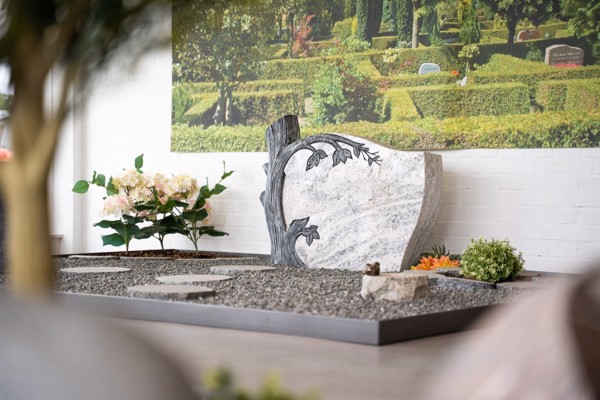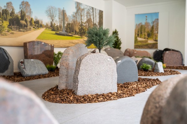 Her kan du selv designe gravstenen - lige fra valg af type, farve, størrelse og til dekoration og tekst.