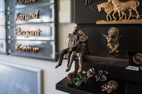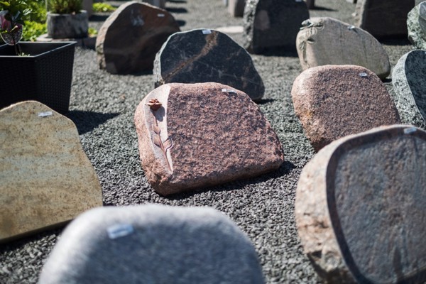 Her kan du selv designe gravstenen - lige fra valg af type, farve, størrelse og til dekoration og tekst.