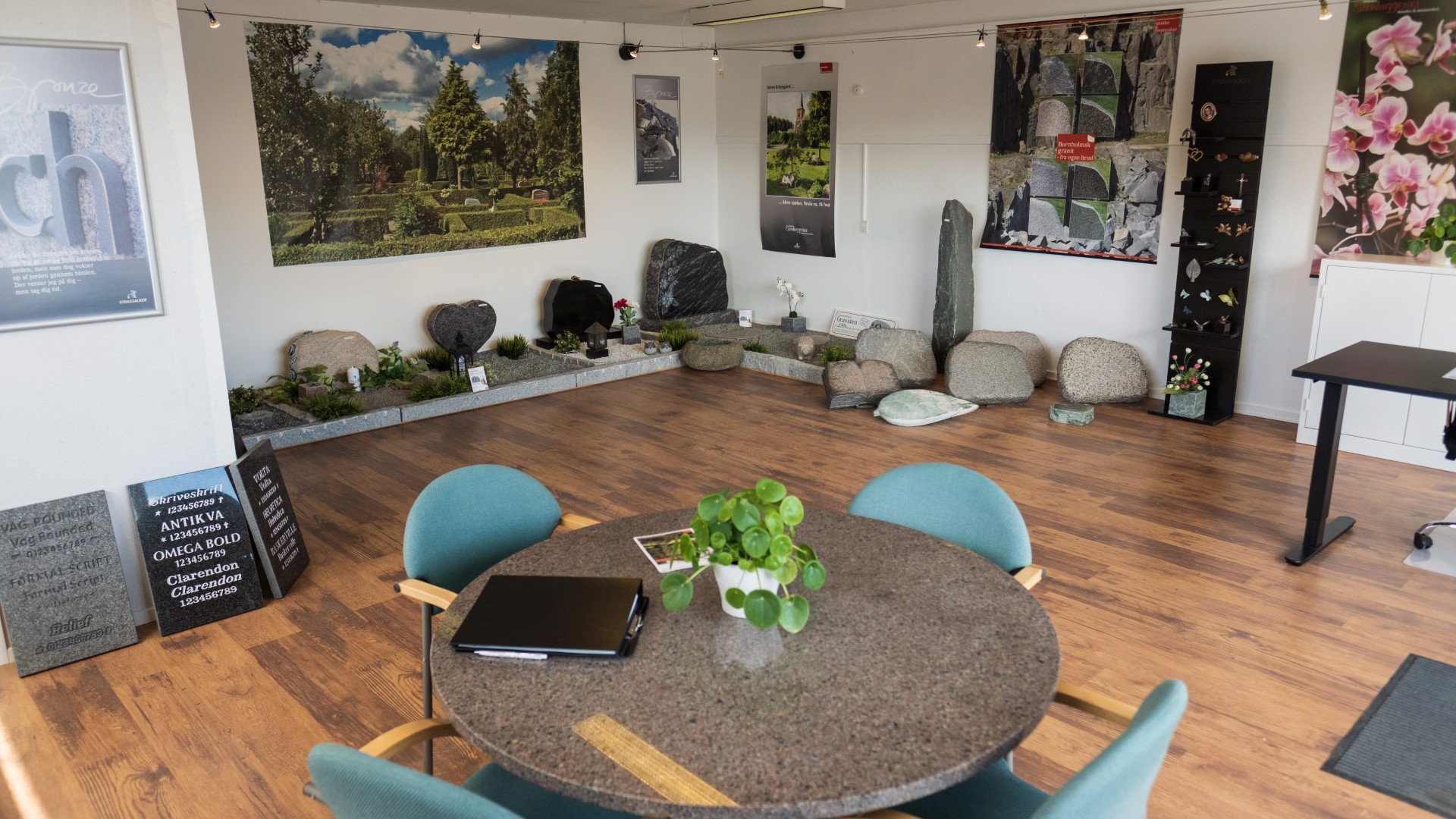 Her kan du selv designe gravstenen - lige fra valg af type, farve, størrelse og til dekoration og tekst.