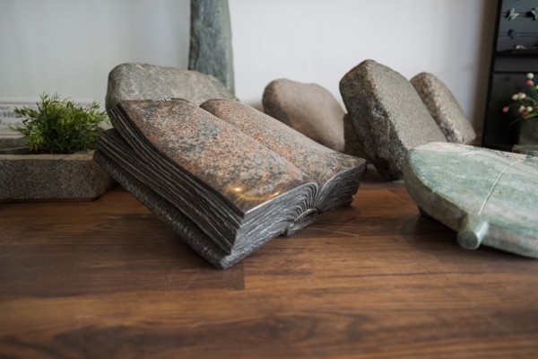 Her kan du selv designe gravstenen - lige fra valg af type, farve, størrelse og til dekoration og tekst.