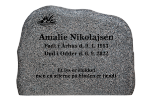 Lone kan, i tæt dialog med de efterladte, hjælpe med at designe den helt rigtige sten. Når der er aftalt, hvilken type granit og inskriptioner og dekorationer stenen skal have, udarbejdes digitalt design, som kan deles via e-mail med øvrige pårørende, som skal med ind over beslutningerne.