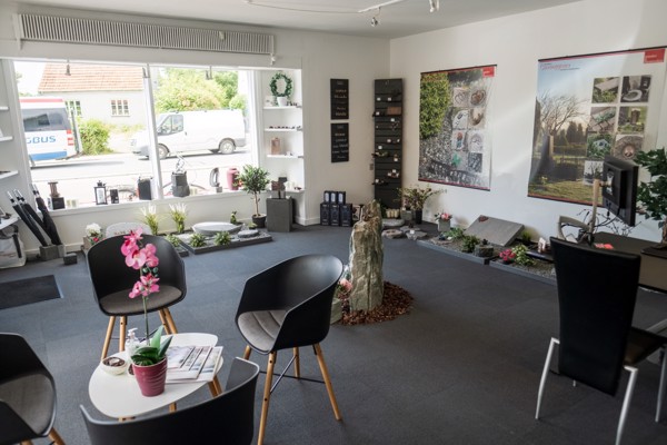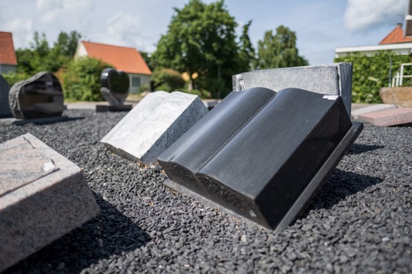 Her kan du selv designe gravstenen - lige fra valg af type, farve, størrelse og til dekoration og tekst.