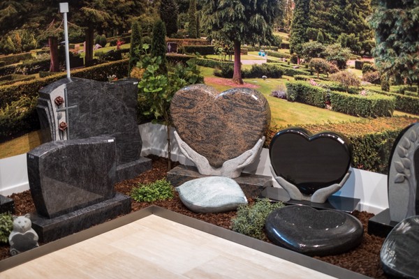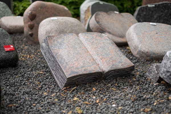 Her kan du selv designe gravstenen - lige fra valg af type, farve, størrelse og til dekoration og tekst.