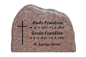 Vi tilbyder et design af inskriptionen på et billede af den valgte gravsten. Designet kan deles på mail med andre pårørende, som er med i beslutningsprocessen.