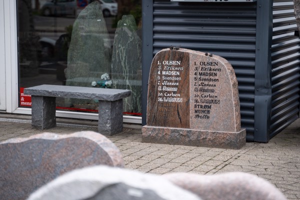 Vi tager os god tid til en personlig samtale, hvor vi sammen finder frem til det rette udtryk i valg af sten, form og inskription. Hver gravsten er unik og bliver tilpasset familiens ønsker og behov.
