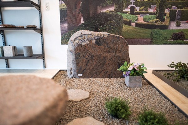 Her kan du selv designe gravstenen - lige fra valg af type, farve, størrelse og til dekoration og tekst.