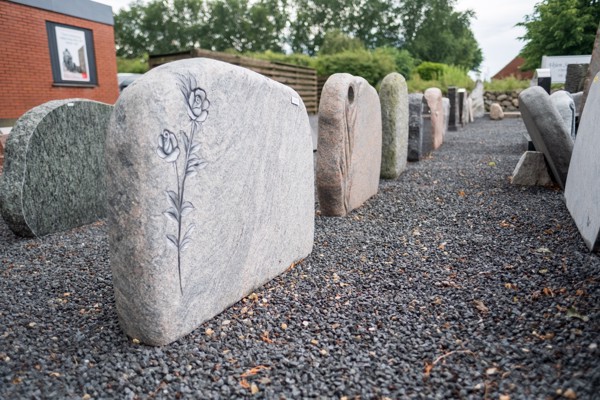 Her kan du selv designe gravstenen - lige fra valg af type, farve, størrelse og til dekoration og tekst.