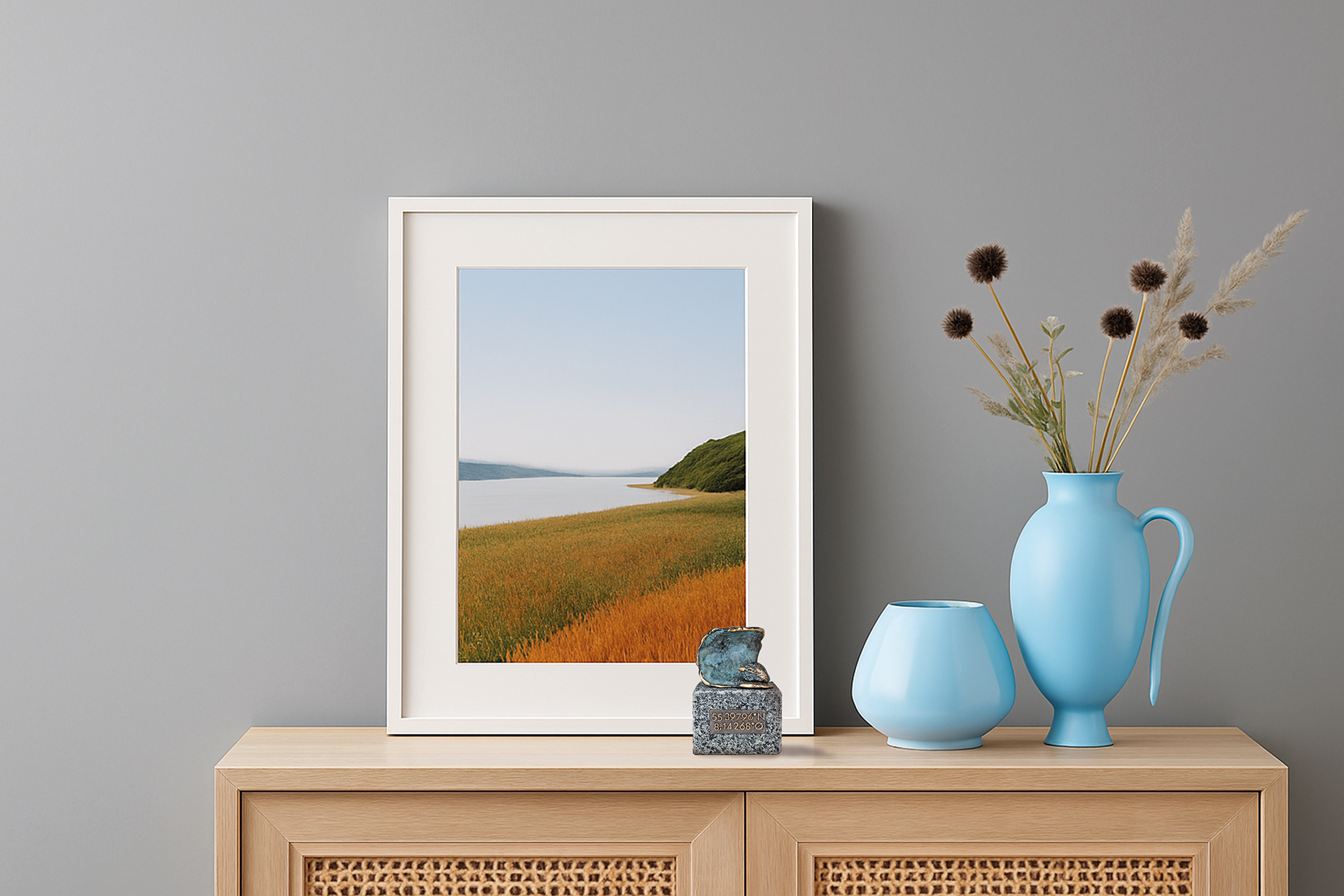 | Skabt i granit og bronze, med symboler for skov, hav og kirkegård. Diskret markeret med koordinaterne til afskedsstedet - et evigt og personligt minde. Et smukt og meningsfuldt objekt i hjemmet, der skaber plads til refleksion, kærlighed og nærvær i hverdagen. Bevar kærligheden, og lad mindet leve videre - i hjertet og i dit hjem. |