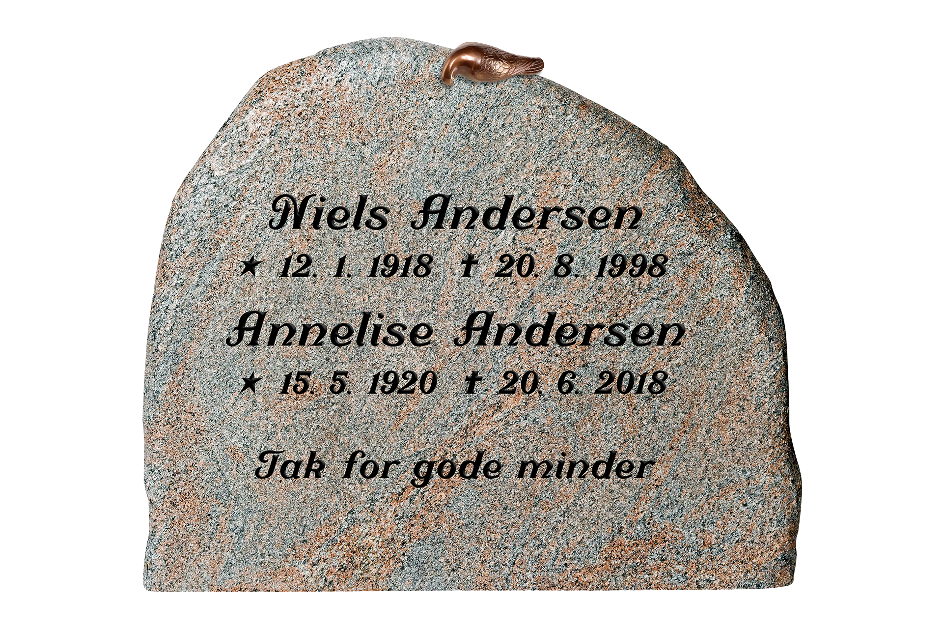 Der er mange muligheder for at gøre gravstenen personlig. Du kan vælge mellem et stort udvalg af indhuggede dekorationer, bronze dekorationer, porcelænsfotos, QR-koder og gravering.