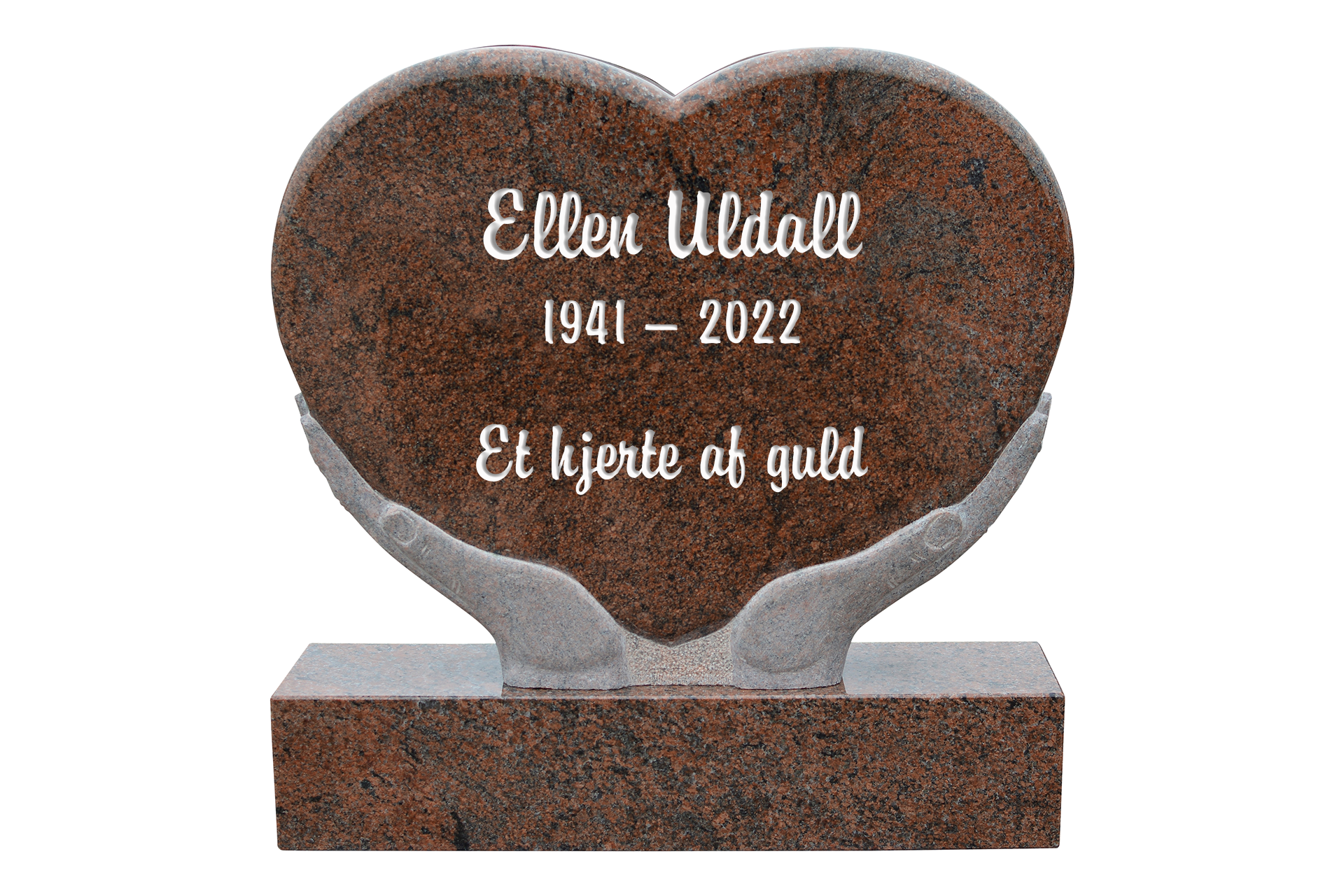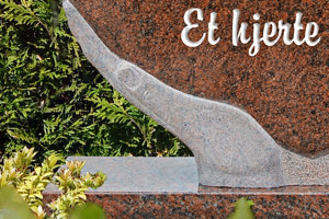 Gravsten i hjerte facon på sokkel i Multicolor granit. Mål 60 x 48 cm.