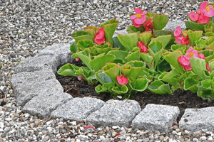 Unika gravsten i bornholmsk Blå Rønne granit med Evighedsrose udhugget i stenen.