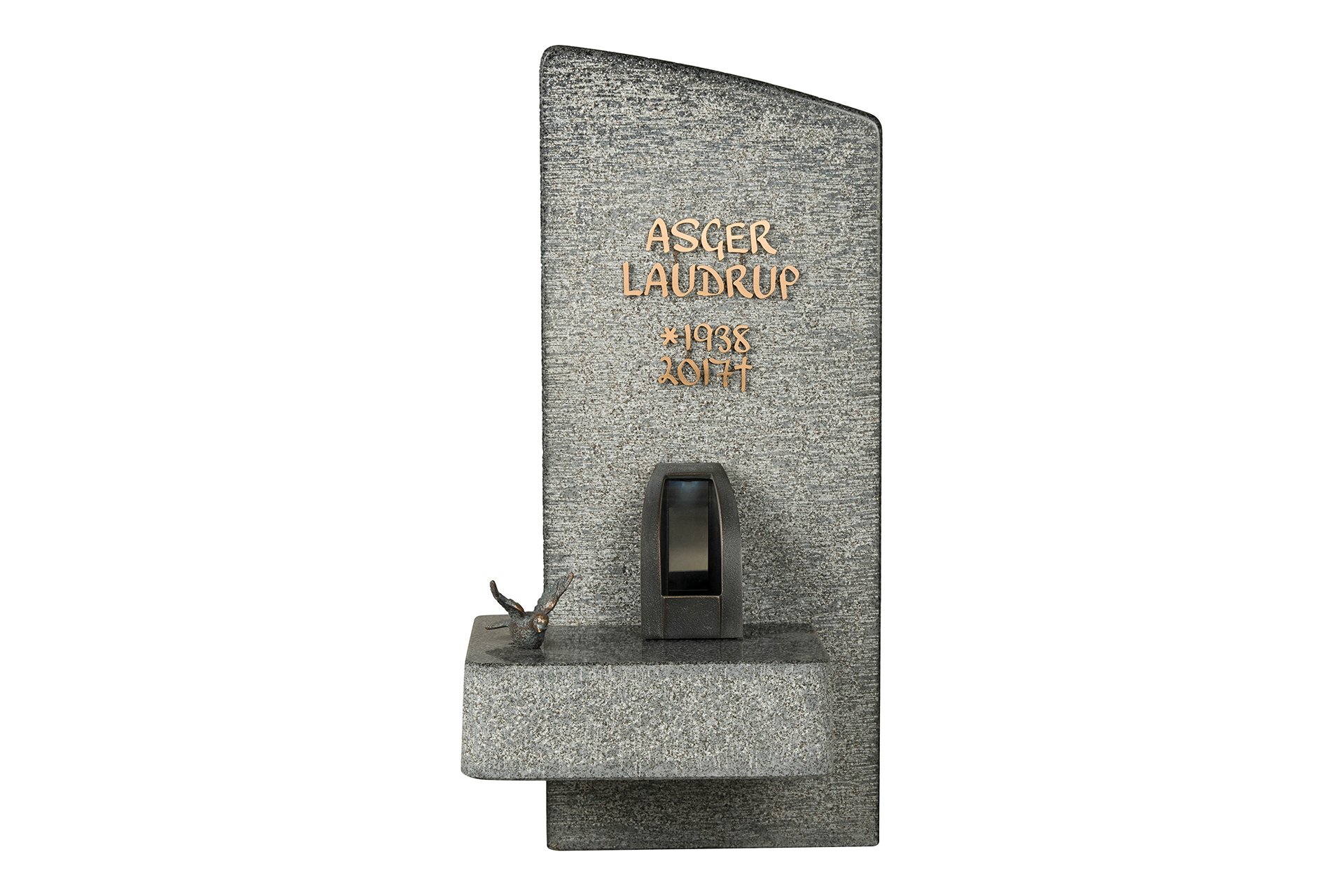 Unika gravsten i stelefacon, med special behugning og hylde til lanterne eller figur.