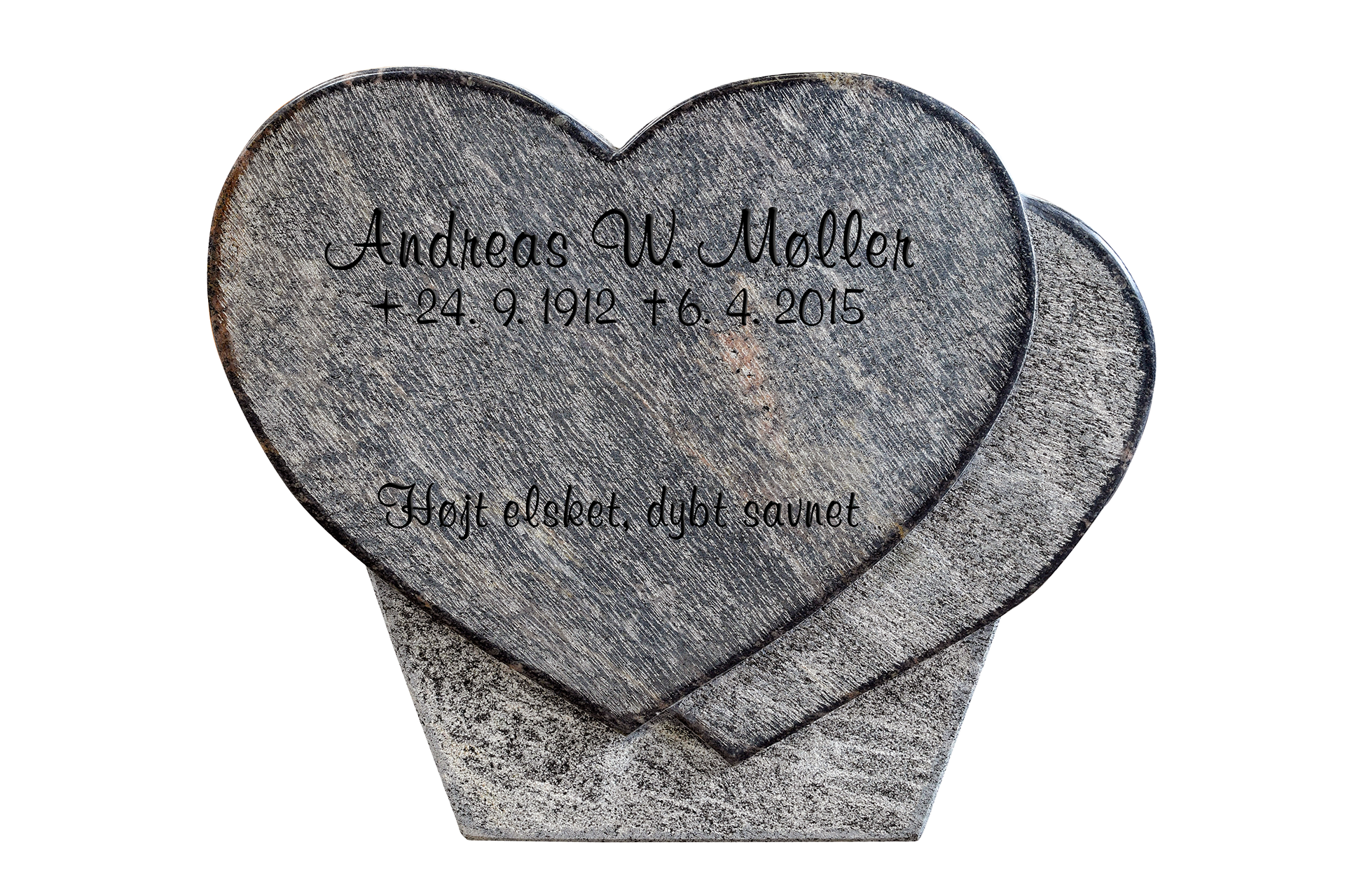 Unika hjertegravsten udført i bornholmsk Paradis granit. Special behugning med slebne detaljer.