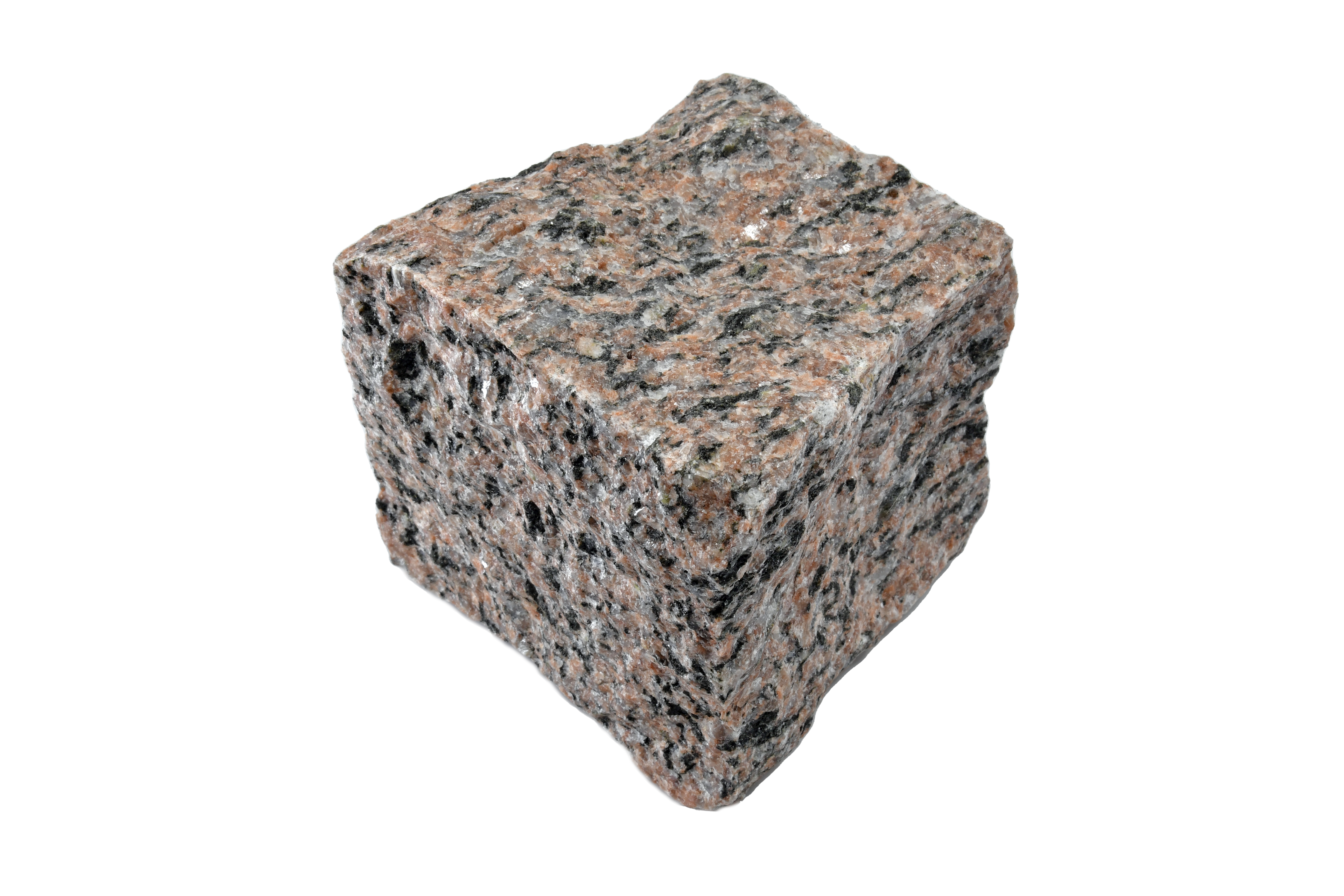 Chaussesten. str. ca. 9 x 9 x 9 cm. Granittype Rød.