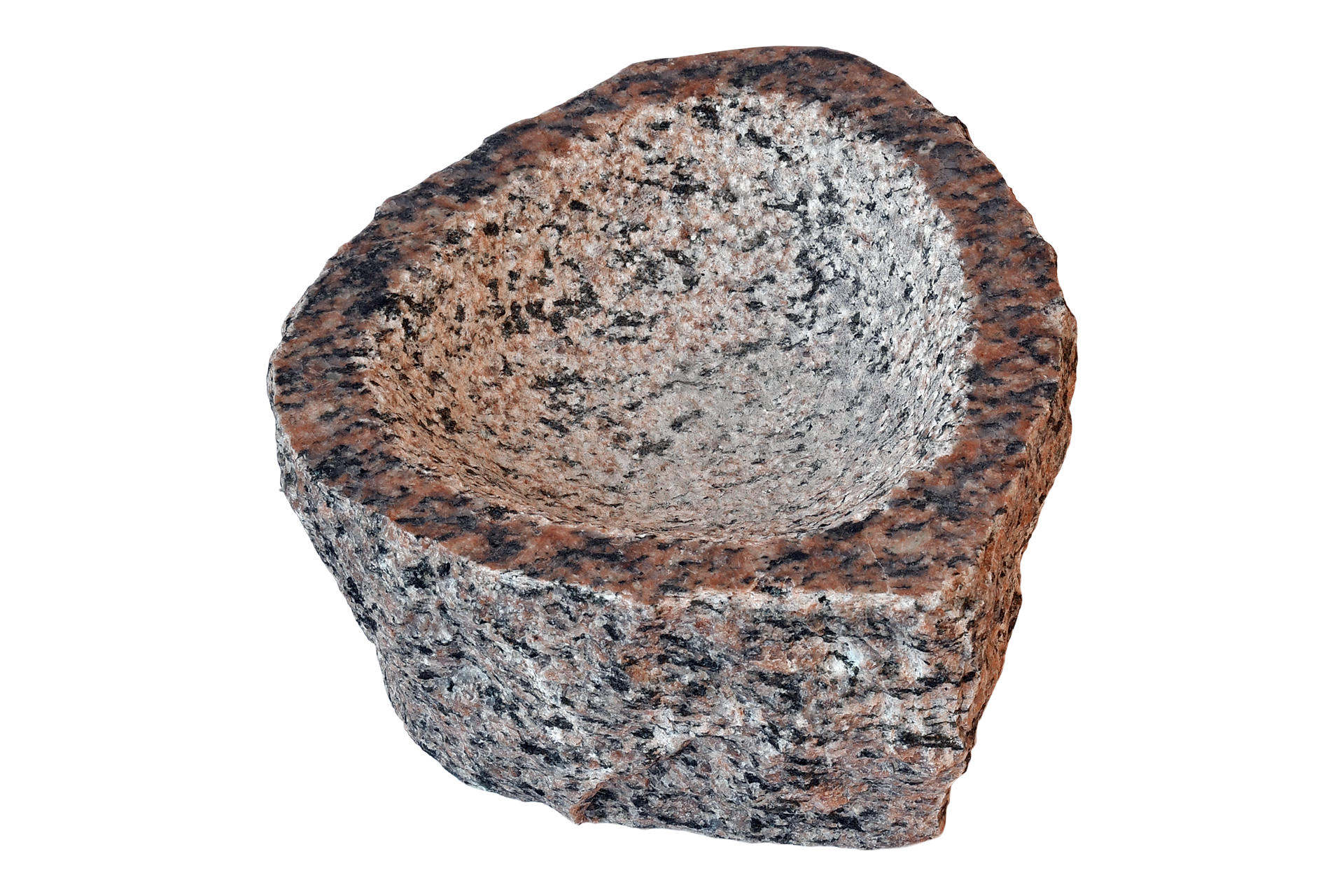 Granitfuglebad, naturlig form. Str. ca. 18 cm på bredeste led. Granittype Rød.