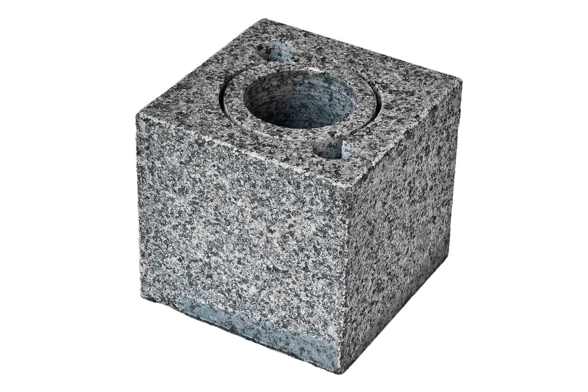 Granitvase, kvadrat ca. 15 x 15 x 15 cm, vasediameter 7 cm. Granittype Blå Rønne.