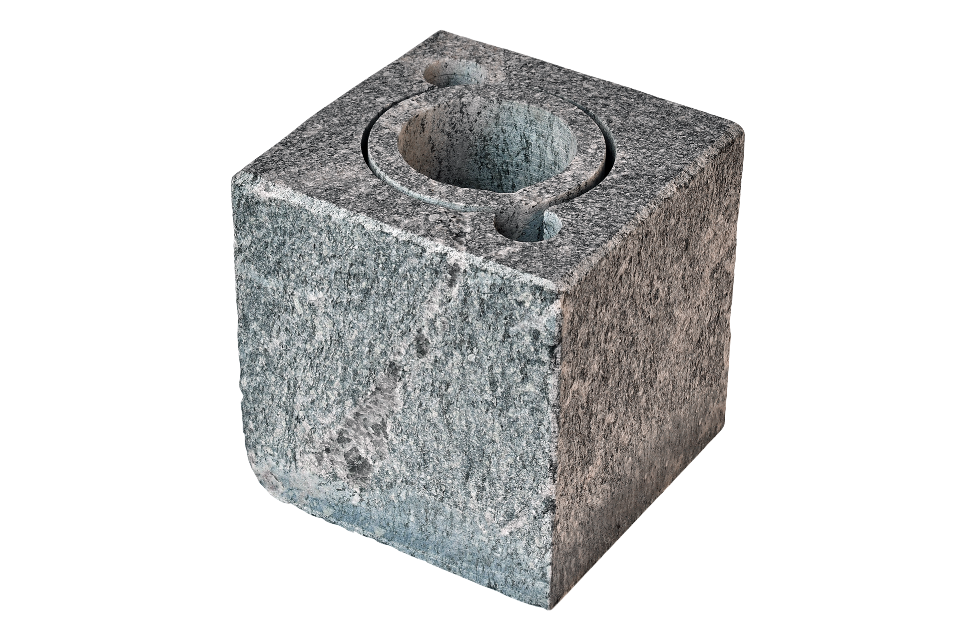 Granitvase, kvadrat ca. 15 x 15 x 15 cm, vasediameter 7 cm. Granittype Paradis