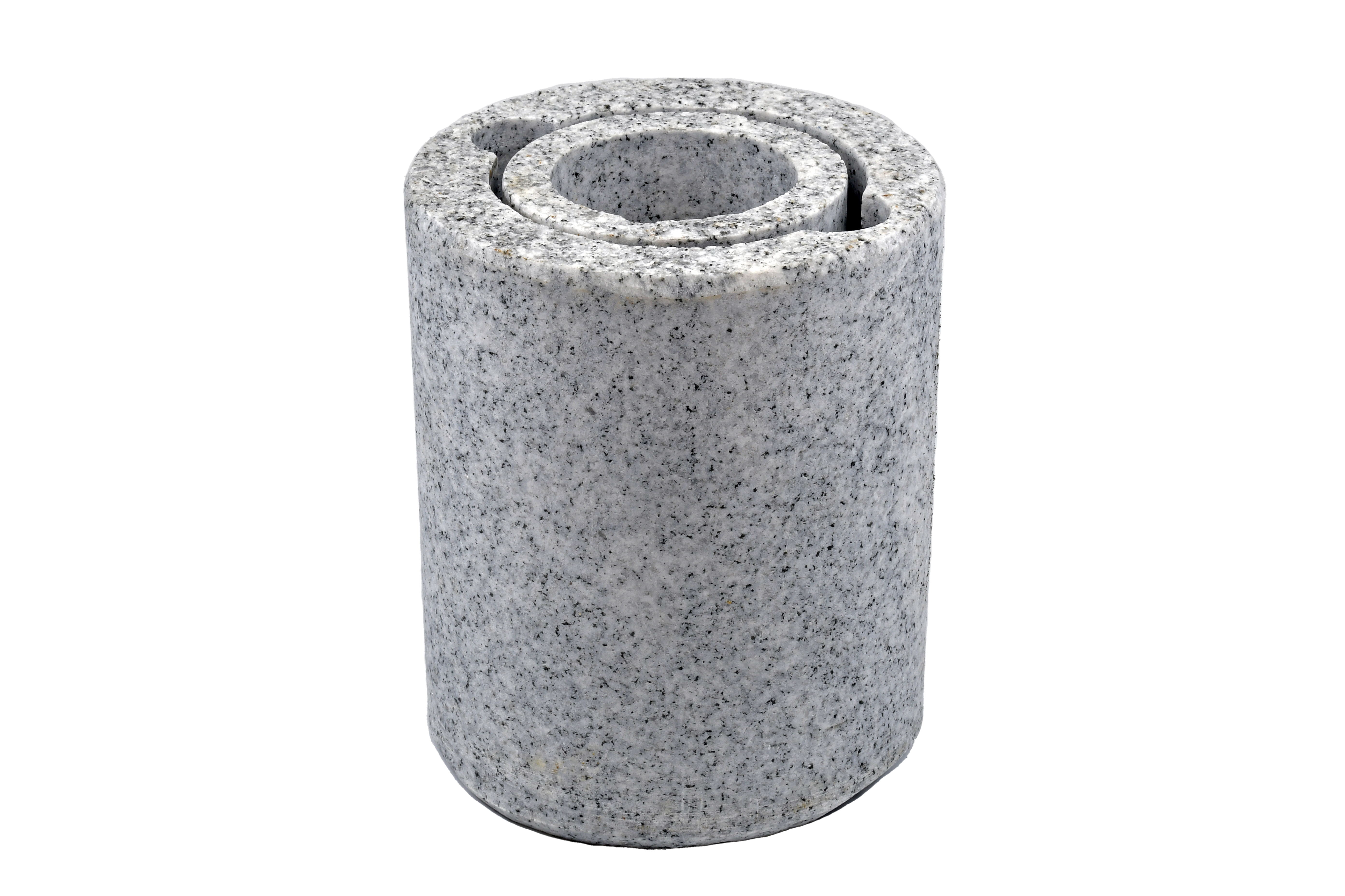 Granitvase, rund Ø 12,5 x 15 cm, vasediameter 5,5 cm. Granittype Finsk Grå.